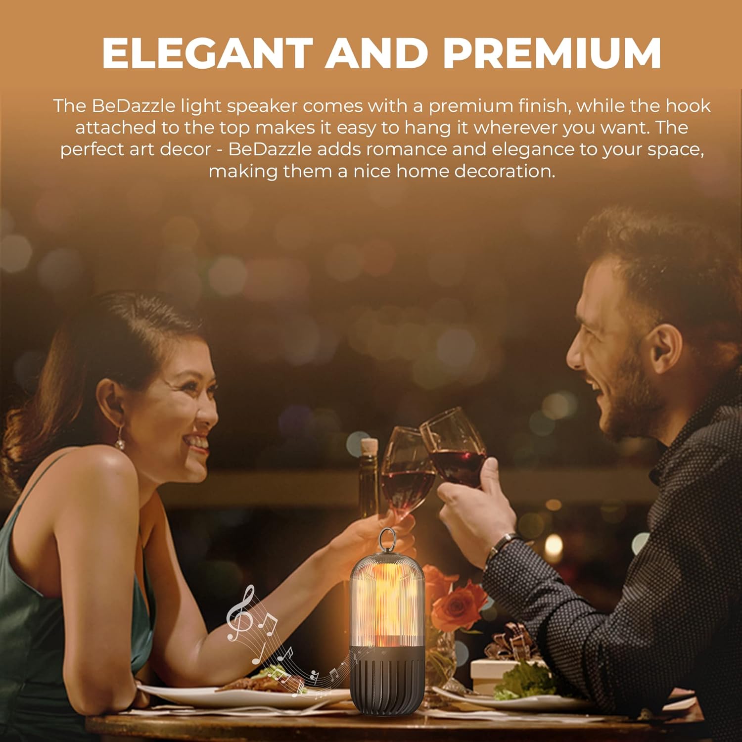 • [PREMIUM FINISH] – BeDazzle light speaker comes with a premium finish, while the hook attached to the top makes it easy to hang it where ever you want.
