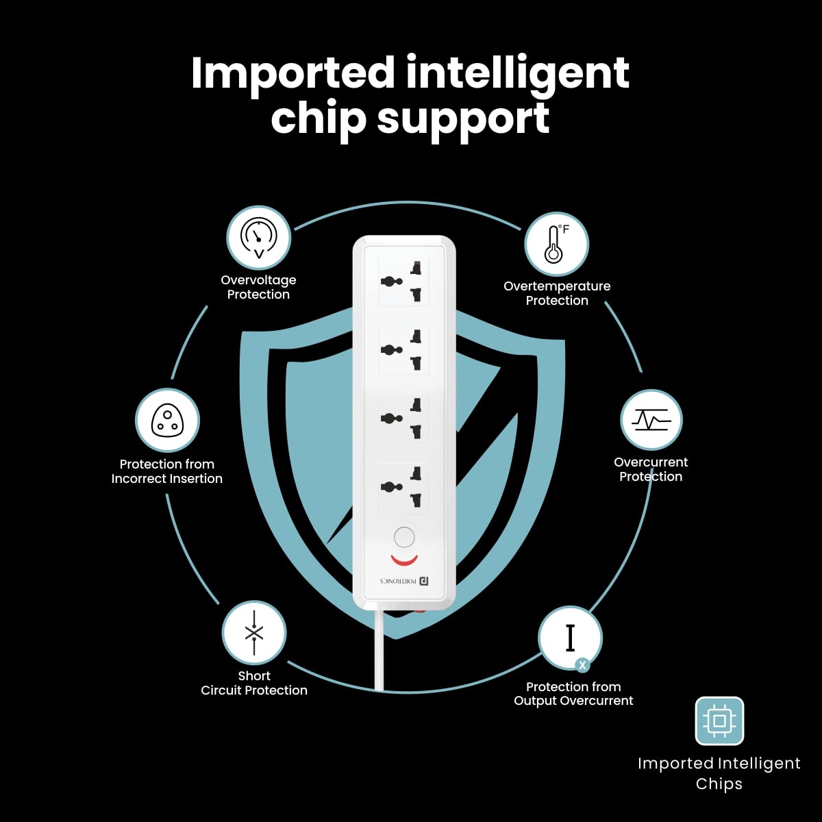 Special Feature Imported Intelligent Chips, Over Protection Voltage, Short Circuit Proetection, 4 Power Sockets, PC Alloy, Fire Proof Material, 3M Cord Length