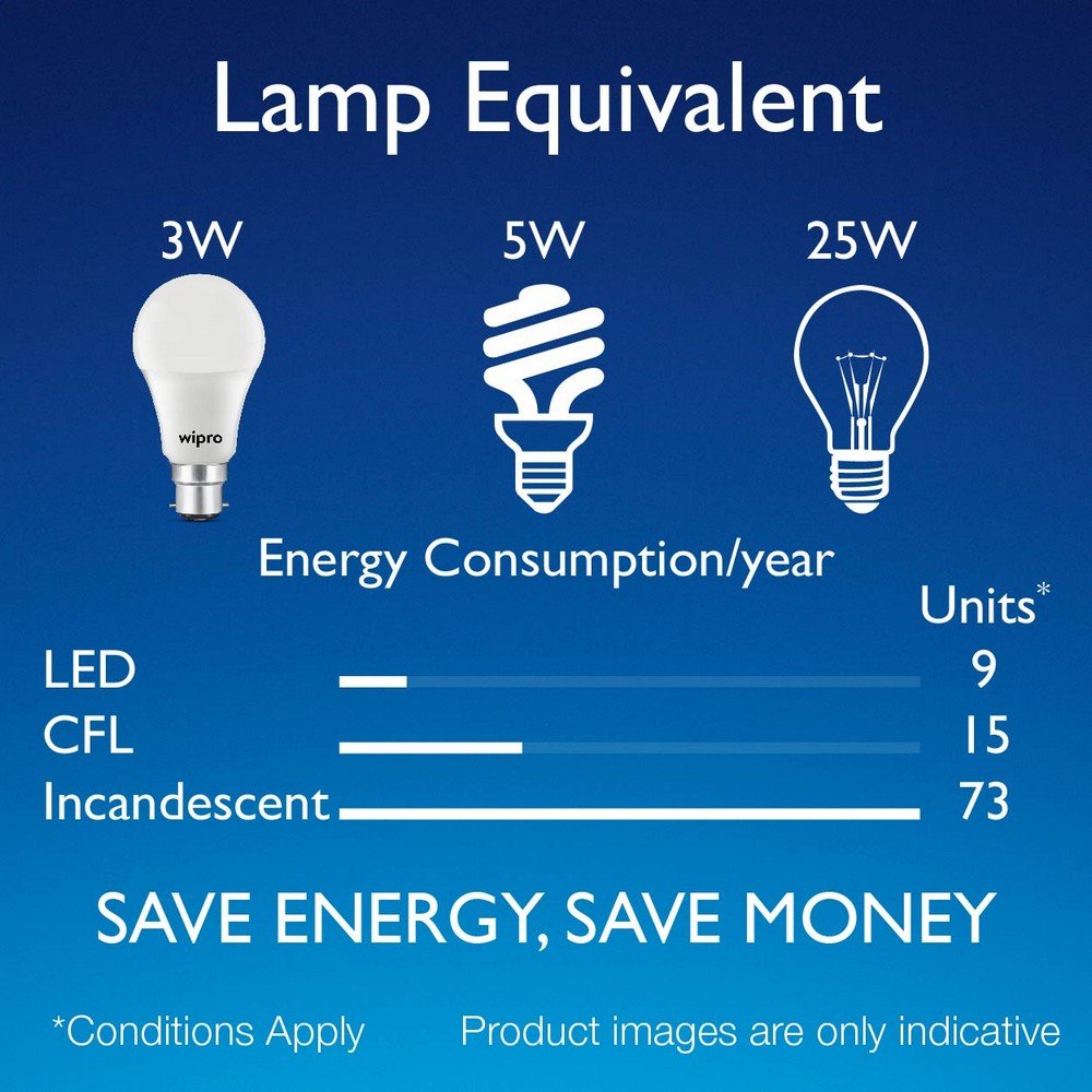 - Wattage : 3W Colour : Cool Day White (6500K) Base : B22 Number of Units : 1